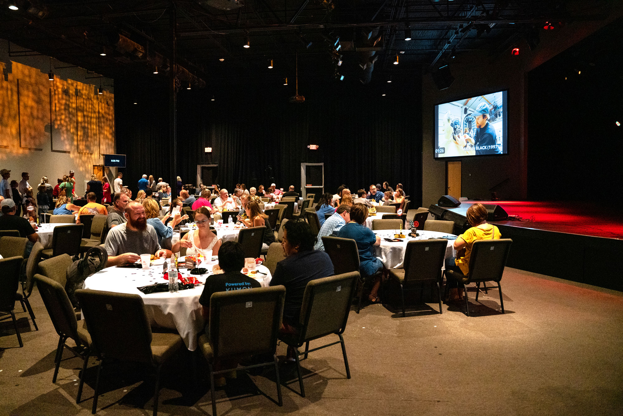 Our auditorium features a 21 ft by 10 ft LED main screen, two side screens, full sound system, stage lighting, and multiple connectivity options. Perfect for presentations, video playback, and multimedia events.